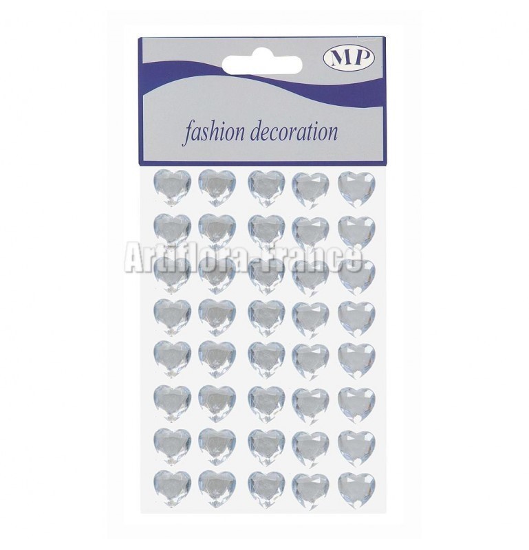 Sachet de stickers en forme de coeur, effet strass.Sachet de 40 pièces.Couleur : Argent brillantDimensions : 16mm