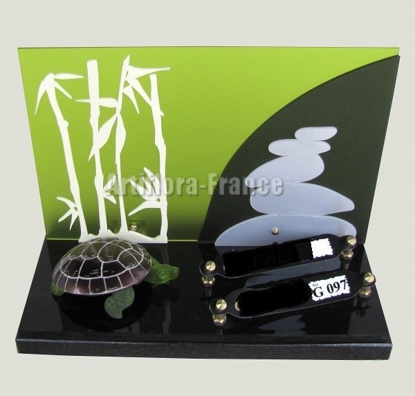 PLAQUE ALTUGLASS GALBEE VERT 20X30CMSUR SOCLE EN GRANIT NOIR+ STATUETTE ALTU TORTUE